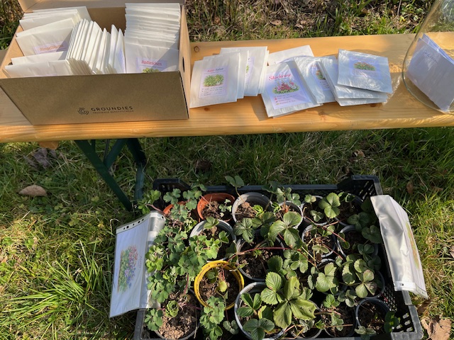 Pflänzchen- und Saatgutbörse. Ein herzliches Dankeschön an alle Helferinnen und Helfer.